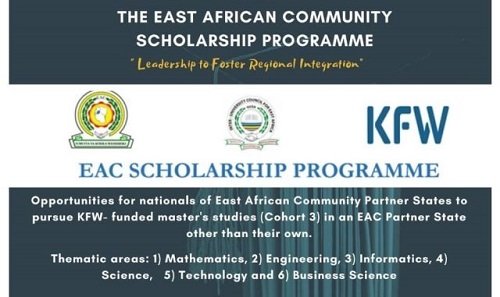 The EAC Scholarship Program is an initiative of the East African Community (EAC) and the Federal Republic of Germany. The project began in 2018 when the EAC Secretariat and Inter-University Council for East Africa (IUCEA) entered into a memorandum of understanding (MoU) with KfW (German Development Bank) geared towards the training of students within the EAC Region.