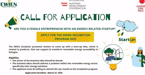 Ethiopian Women in Energy (EWiEn) has launched the first women youth, energy-based incubator program in Ethiopia (EWiEn incubator). The program is designed to address the energy access gap by making women change agents, through promoting innovation and women’s inclusiveness.