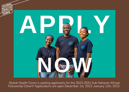 GHC welcomes young professionals from Burundi, Ethiopia, Ghana, Kenya, Liberia, Malawi, Nigeria, Rwanda, South Africa, Tanzania, Uganda, Zambia, and Zimbabwe to apply for paid 13-month fellowships with health organizations in Malawi, Rwanda, Uganda, and Zambia.