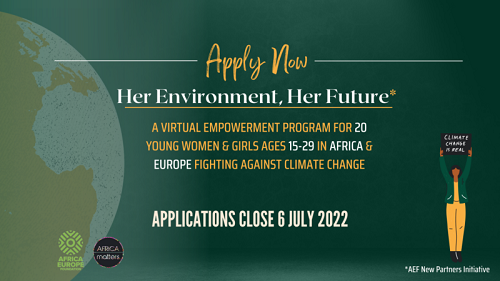 Her Environment, Her Future is a nine-week, non-residential youth leadership and virtual advocacy program for young women from Africa and Europe fighting against climate change.