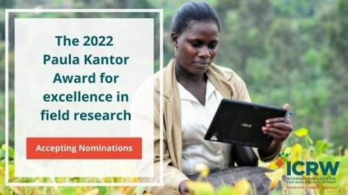 ICRW Paula Kantor Award 2022… Do you wish to apply for ICRW Paula Kantor Award 2022? If yes, then this informative article is for you. You will be given detailed information about ICRW Paula Kantor Award 2022, Eligibility, Evaluation Criteria, And How To Nominate.