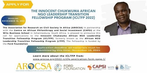 - Applicant must be a Founder/Executive Director of an NGO in Africa, and from Africa, ‘actively’ seeking to transition away from their NGO/CSO;
