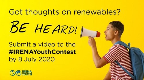 You can enter the contest by uploading a video on Twitter, Facebook or Instagram, using the hashtag #IRENAYouthContest and tagging IRENA, and creatively addressing your ideas on ‘Renewable Energy in the Time of COVID-19: Youth Actions for Recovery’ in 60 seconds or less.