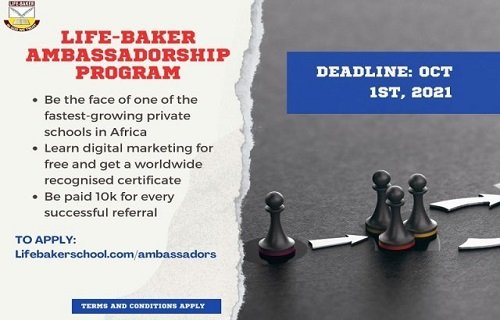 After training, all ambassadors will be entrusted with convincing parents to send their children to the Life Baker Group of Schools, and you’ll be paid N10,000 for each child you recommend. Participants are expected to use the skills learned during the training as school ambassadors. This task provides them an opportunity to practice what they have learned and earn money in the process.