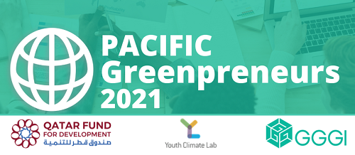 The Pacific Greenpreneurs Incubator program is a free, carefully curated training and mentoring program designed to support green entrepreneurs to build robust and sustainable business models, and the skills, tools, and confidence to implement them for success. The program will culminate in a business pitch competition that will provide seed funds to winning enterprises. The program will run from October 2021-January 2022 in partnership with the Qatar Fund For Development and Youth Climate Lab and local business support organizations.