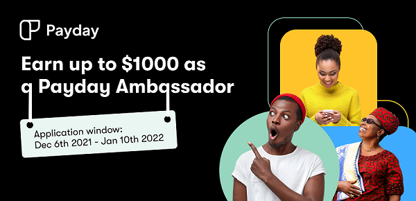 It’s a great way for Africans all over the globe who currently use and love Payday to earn great rewards by referring their friends and family to Payday. Through the Payday Ambassador Program, you get awesome perks and reward when you tell your friends about Payday.