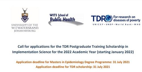 The University of the Witwatersrand’s School of Public Health invites suitably qualified candidates to apply for a full-time funded Master Degree Program in the field of Implementation Science. The scholarship is provided by TDR, the UNICEF/UNDP/World Bank/WHO Special Program for Research and Training in Tropical Diseases – hosted at the World Health Organization in Geneva, Switzerland.