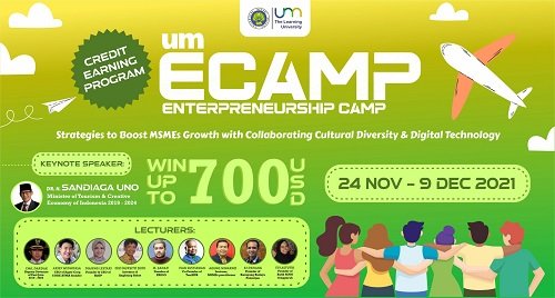 Universitas Negeri Malang proudly presents a credit-earning program with 12 intensive meetings for you who want to be an entrepreneur in culture field. During the program, you will meet notable speakers, mentors, entrepreneurs, and academics specialized in SMEs and startup industry.